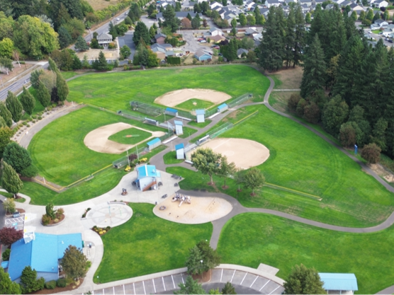 Holley Park: Baseball and Softball Fields, Splash Pad, Skate Park, Basketball Court, Picnic Tables, and a Playground